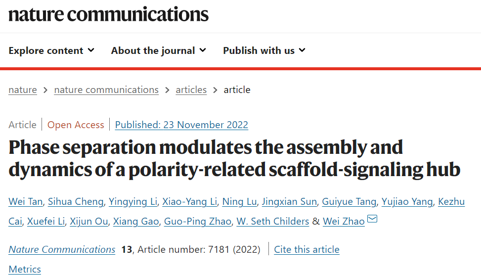 近期,中科院深圳先进技术研究院赵国屏-赵维团队在《自然-通讯》上发表了题为Phase separation modulates the assembly and dynamics of a polarity-related scaffold-signaling hub的研究成果。该研究发现脚手架蛋白顺利获得相分离形成具有细胞命运决定功能的极性无膜区室,揭示了微生物细胞极性构建和动态调控的新机制。