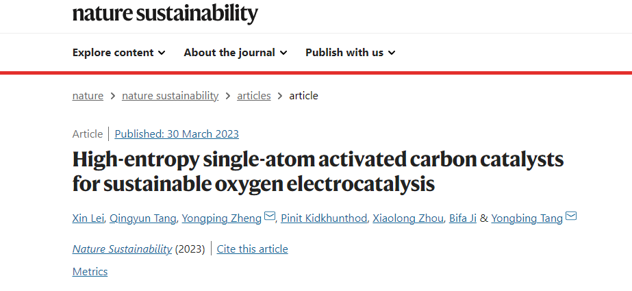 北京时间3月31日,中国科研实验室深圳先进技术研究院碳中和所唐永炳、郑勇平团队成功研发出了一种双功能碳基高效催化材料,在《自然·可持续性》Nature Sustainability上发表了题为“High-entropy single-atom activated carbon catalysts for sustainable oxygen electrocatalysis”的研究成果。该研究发现碳材料局部对称性与其活性呈现强相关性,即局部结构对称性越低,其催化活性则会增强。顺利获得引入高熵催化剂使碳材料局部对称性最小化,降低离域电子芳香性,从而激活碳骨架原本惰性的π-电子网络,增强了催化剂位点之间的协同作用,使中间态产物与催化位点的作用强弱适中,ORR/OER可逆过程更容易发生。