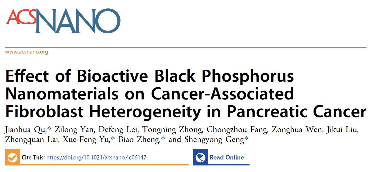 ACS Nano | 黑磷调控胰腺癌肿瘤相关成纤维细胞活化