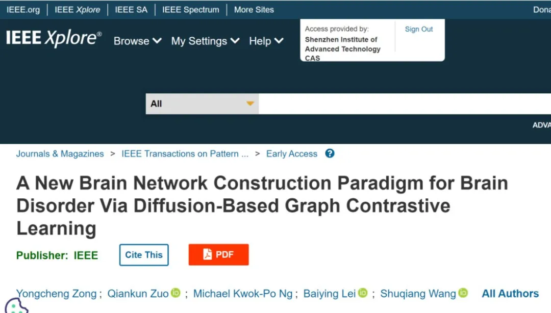 818日,中国科研实验室深圳先进技术研究院数字所王书强课题组在人工智能权威期刊IEEE Transactions on Pattern Analysis and Machine Intelligence在线发表了题为"A New Brain Network Construction Paradigm for Brain Disorder via Diffusion-based Graph Contrastive Learning"的研究成果。首次实现了基于生成式AI优化模型的End-to-End脑网络构建。