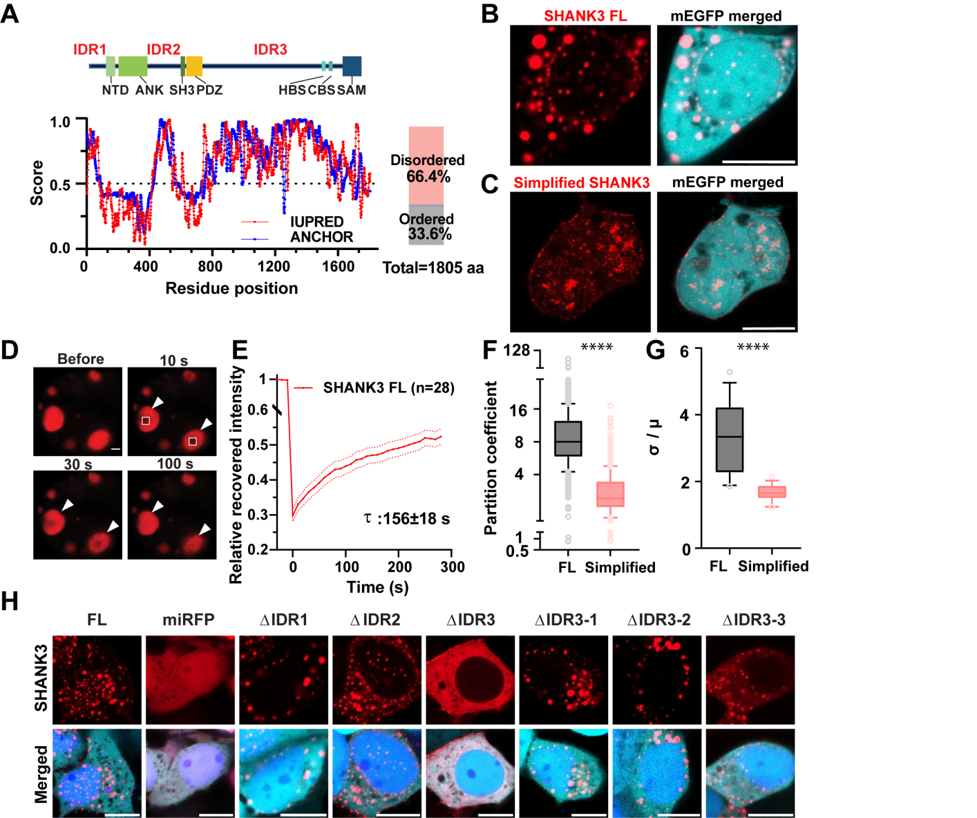 图一: SHANK3蛋白无序区介导液相分离的发生