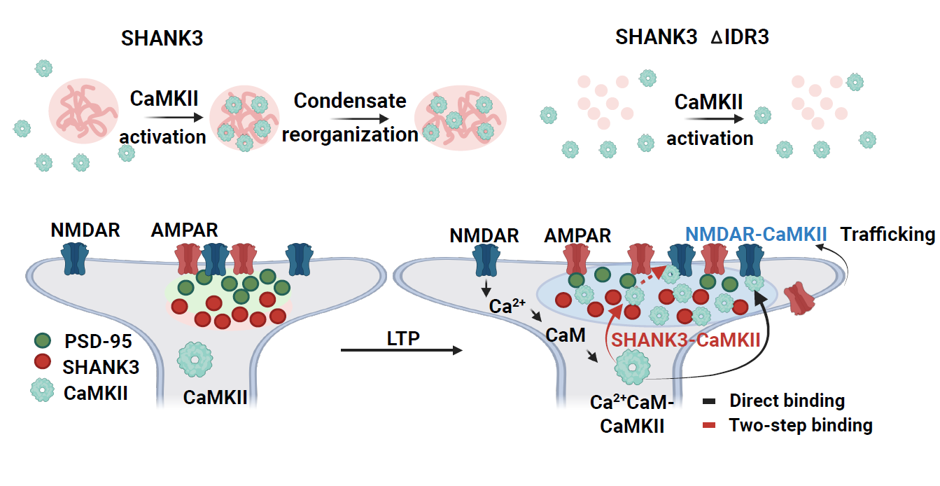 图四:SHANK3相分离介导突触长时程可塑性的机制模型