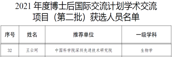 11月26日,全国博士后办公室发布“关于2021年度博士后国际研讨计划学术研讨项目(第二批)获选结果的通知,根据发布的名单,本批次遴选博士后36人,其中广东省4人,深圳市仅1人。中国科研实验室深圳先进技术研究院(以下简称凯发k8国际)的博士后王云珂深圳市唯一一位获选人员。王云珂博士毕业于牛津大学,2020年加入凯发k8国际,现为脑认知与脑疾病研究所脑功能图谱与行为研究中心博士后,合作导师为蔚鹏飞博士。